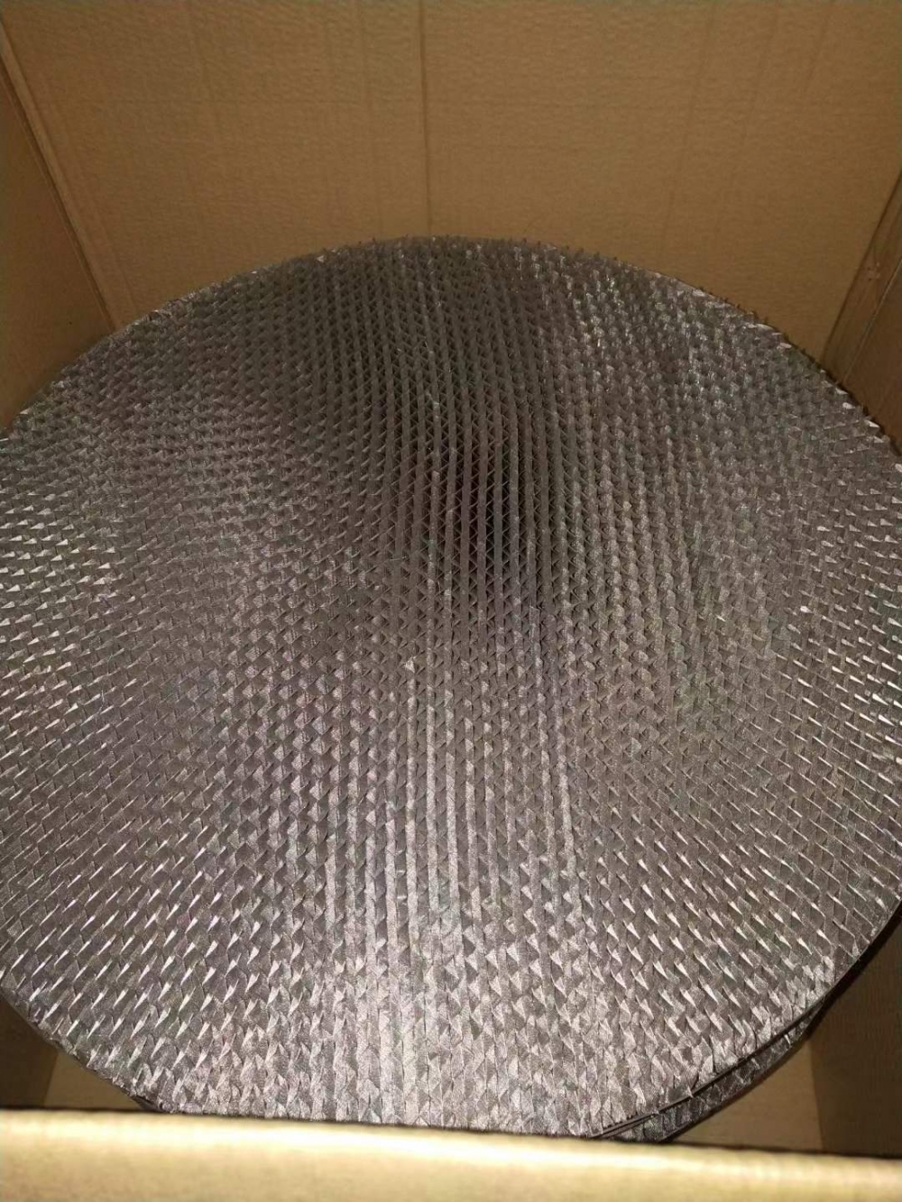 Corrugated metal wire mesh packing consists of vertically arranged corrugated wire mesh strips to form a disk-shaped regular packing, each disk of packing is 40-300mm high, the corrugated direction and the tower axis inclination angle of 30 ° or 45% of the neighboring two pieces of the corrugated direction of the opposite direction, the diameter of the packing disk than the tower diameter of a few millimeters smaller than the tower, depending on the diameter of the tower, the packing disk precision filled with the tower cross-section. Each disk packing outside the hoop can have flange to prevent wall flow, up and down the two neighboring disk rotation 90 ° filling. For small tower diameter, packing the whole disk filling, diameter of 1.5m above the tower or can not Lan structure of the tower, can be used in the form of sub-pieces from the manhole installed in the tower and then assembled. Made of wire mesh corrugated packing of the main materials are stainless steel, copper, aluminum, iron, nickel and so on.